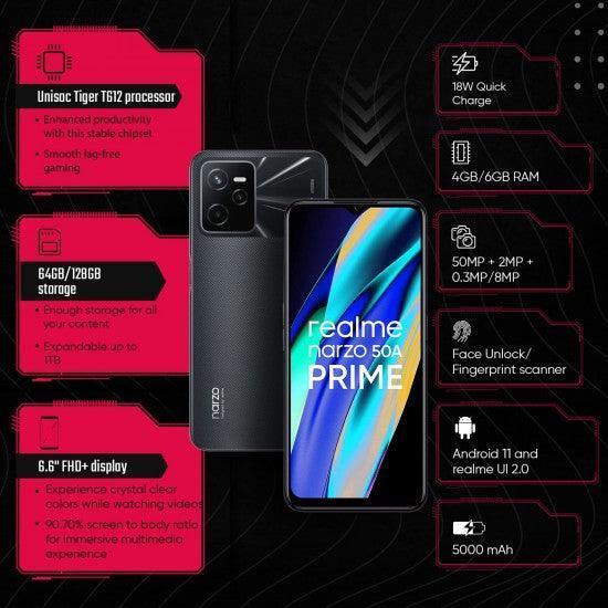 Buy realme Narzo 50A Prime (Flash Black, 128 GB)  (4 GB RAM) Used Refurbished mobile phones at the best price from Triveni World. Click for product feature details now.