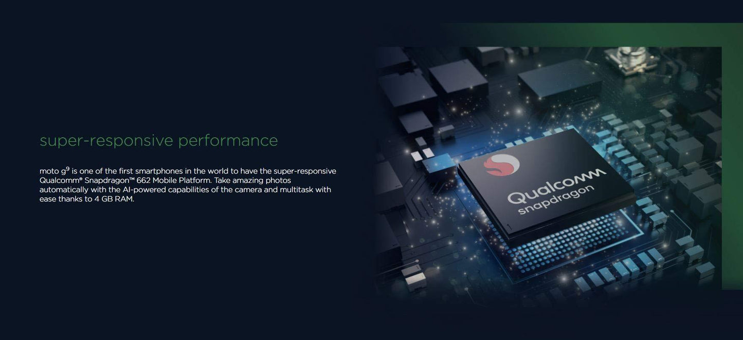 Details: Powered by the AI-enabled Qualcomm Snapdragon 662 octa-core processor and 4 GB RAM, the Moto G9 provides a smart, super-responsive, and supercharged performance.Don’t let low light stop you from clicking stunning pictures, thanks to its 48 MP f/1.7 Triple Camera System with Quad Pixel technology and Night Vision.By combining four pixels into one large 1.6μm pixel, the 48 MP sensor gives you 4X the low-light sensitivity. Also, all your shots come out sharp and bright even in low light, thanks to the f/1.7 aperture.