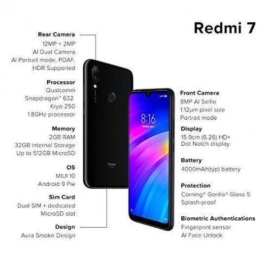Redmi 7 (Eclipse Black, 3GB RAM, 32GB Storage) (Refurbished)