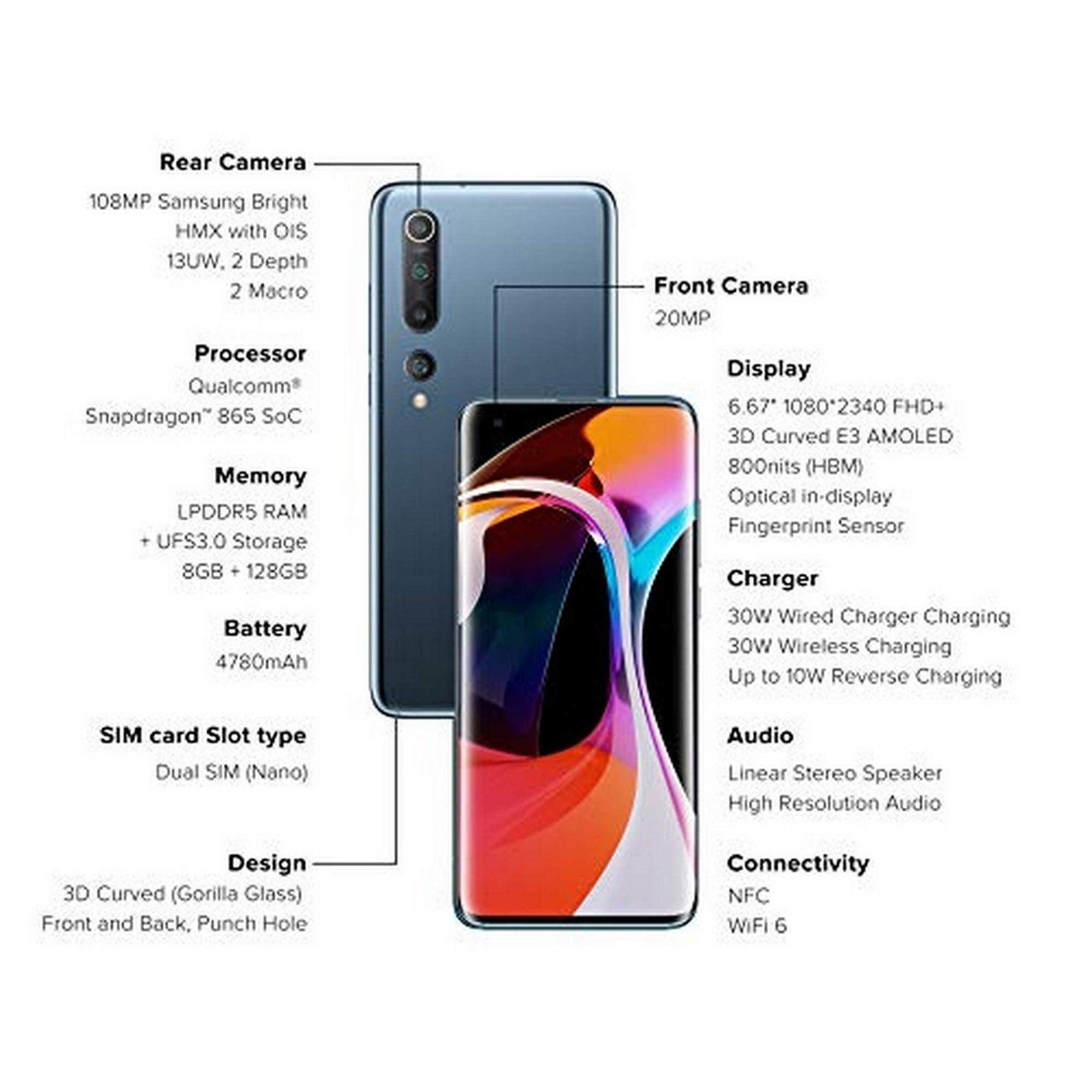 (Refurbished) Mi 10 (Twilight Grey, 8GB RAM, 128GB Storage)
