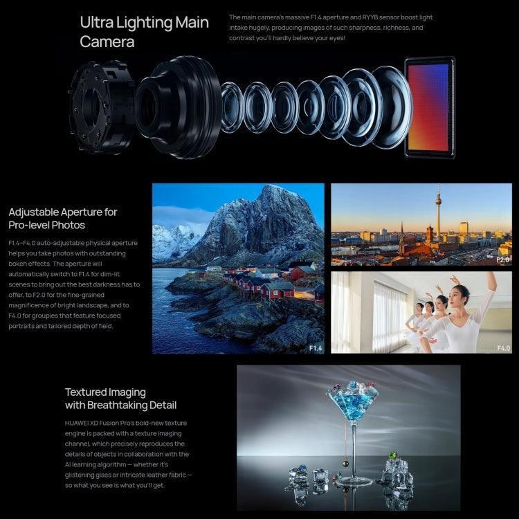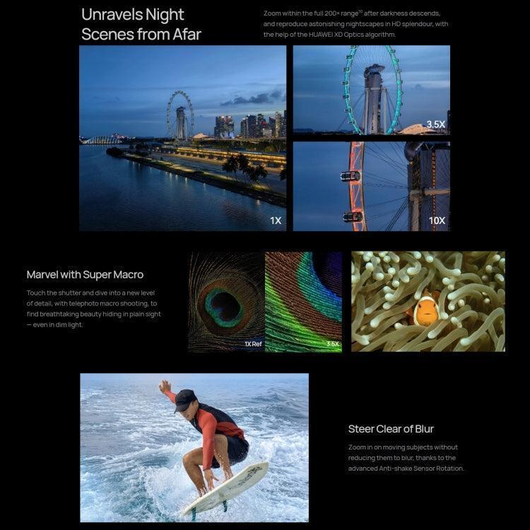 Features1. Qualcomm Snapdragon 8+ 4G octa core,1 x Cortex-X2 3.2GHz + 3x Cortex-A710 2.75GHz + 4 x Cortex-A510 2.0GHz processor, combined with 256GB ROM, high performance, run fast and fluently. 2. 6.67 inch full OLED capacitive screen, multi points touch, FHD+ 2700 x 1220 pixel screen, supports 1-120Hz LTPO adaptive refresh rate, 1440Hz high-frequency PWM dimming, 300Hz touch sampling rate, 1.07 billion colors, P3 wide color gamut, high clear and vivid color. 3. Equipped with 4 cameras: Rear cameras: 48MP super-spotting camera (F1.4~F4.0 aperture, OIS optical image stabilization) + 13MP ultra-wide-angle camera (F2.2 aperture) + 48MP super-spotting night vision telephoto camera (F2.1 aperture, OIS optical image stabilization); Front cameras: 13MP ultra wide-angle camera (F2.4 aperture). You can capture wonderful moment with ease, and take high quality pictures. 4. Photography functions: Rear camera: Treasure box, intelligent variable aperture, 10-level adjustable physical aperture, super night scene, super macro, macro video, video HDR Vivid, macro picture-in-picture, telephoto picture-in-picture, micro movie, audio zoom , high pixel mode, time-lapse photography, super wide-angle, large aperture blur, dual-view video, super night view, portrait mode, professional mode, slow motion, panorama mode, black and white art, streamer shutter, smart filter, multi-camera, Watermark, document correction, AI photography master, dynamic photos, snapshots, 4D predictive focus tracking, smiley face capture, voice-activated camera, timed camera, continuous shooting; Front camera: Video HDR Vivid, slow motion, intelligent wide-angle switching, portrait mode, Panoramic mode, fun AR, time-lapse photography, dynamic photos, smart filters, watermarks, smiley face capture, selfie mirroring, voice-activated photography, timed photography. 5. Built in 4815mAh battery, the battery will make the phone last for several days in normal use. 6. Other Features: Two-way Beidou satellite news, camera treasure box, intelligent variable aperture, 10-level adjustable physical aperture, super night scene, super macro, macro video, video HDR Vivid, micro movie, 3D dynamic weather off screen display, low battery emergency mode, Transfer station, hyperspace storage compression, smart payment, universal card, large folder, mask face recognition, hyperterminal, audio sharing, AI subtitles, cross-device clipboard, privacy center, super privacy mode, security center, pure mode , multi-camera, smart off-screen display, AI subtitles, smooth call, distributed communication, smooth large file flash transfer, multi-screen collaboration, smart screen capture, Xiaoyi smart voice, smart vision, Huawei sharing, Huawei printing, wireless Screencasting, app clone, password safeNetwork1. 2G network frequency: - GSM B2/B3/B5/B8(850/900/1800/1900MHz) 2. 3G network frequency: - WCDMA B1/B2/B4/B5/B6/B8/B19 3. 4G network frequency: - FDD-LTE B1/B2/B3/B4/B5/B7/B8/B12/B17/B18/B19/B20/B26/B28 - TDD-LTE B34/B38/B39/B40/B41Features1. Qualcomm Snapdragon 8+ 4G octa core,1 x Cortex-X2 3.2GHz + 3x Cortex-A710 2.75GHz + 4 x Cortex-A510 2.0GHz processor, combined with 256GB ROM, high performance, run fast and fluently. 2. 6.67 inch full OLED capacitive screen, multi points touch, FHD+ 2700 x 1220 pixel screen, supports 1-120Hz LTPO adaptive rFeatures1. Qualcomm Snapdragon 8+ 4G octa core,1 x Cortex-X2 3.2GHz + 3x Cortex-A710 2.75GHz + 4 x Cortex-A510 2.0GHz processor, combined with 256GB ROM, high performance, run fast and fluently. 2. 6.67 inch full OLED capacitive screen, multi points touch, FHD+ 2700 x 1220 pixel screen, supports 1-120Hz LTPO adaptive r