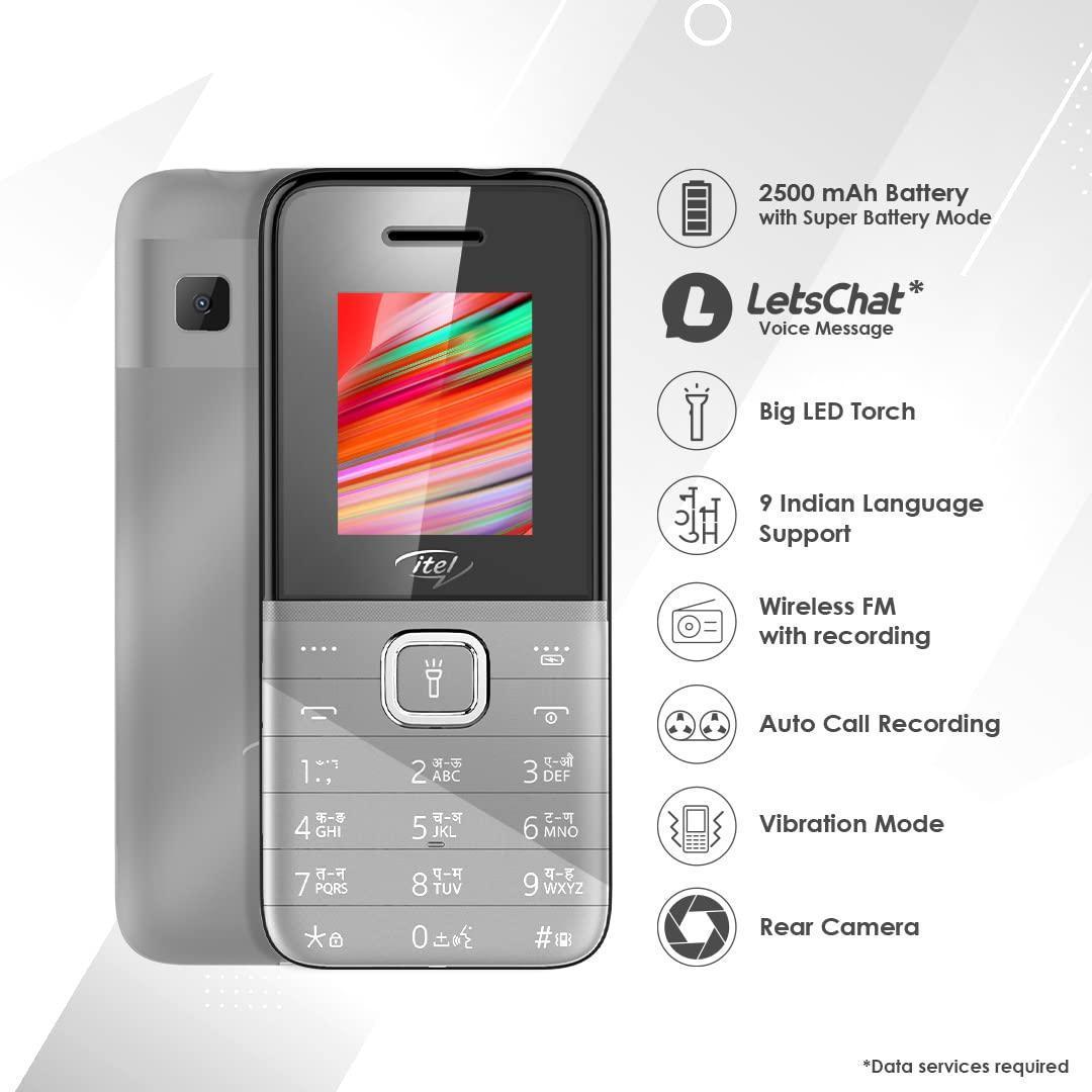 Details: Itel Power110N comes with big battery of 2500 mAh with 12 Days Battery Backup, LetsChat, Big LED Torch, Vibration mode, 09 Input Language support