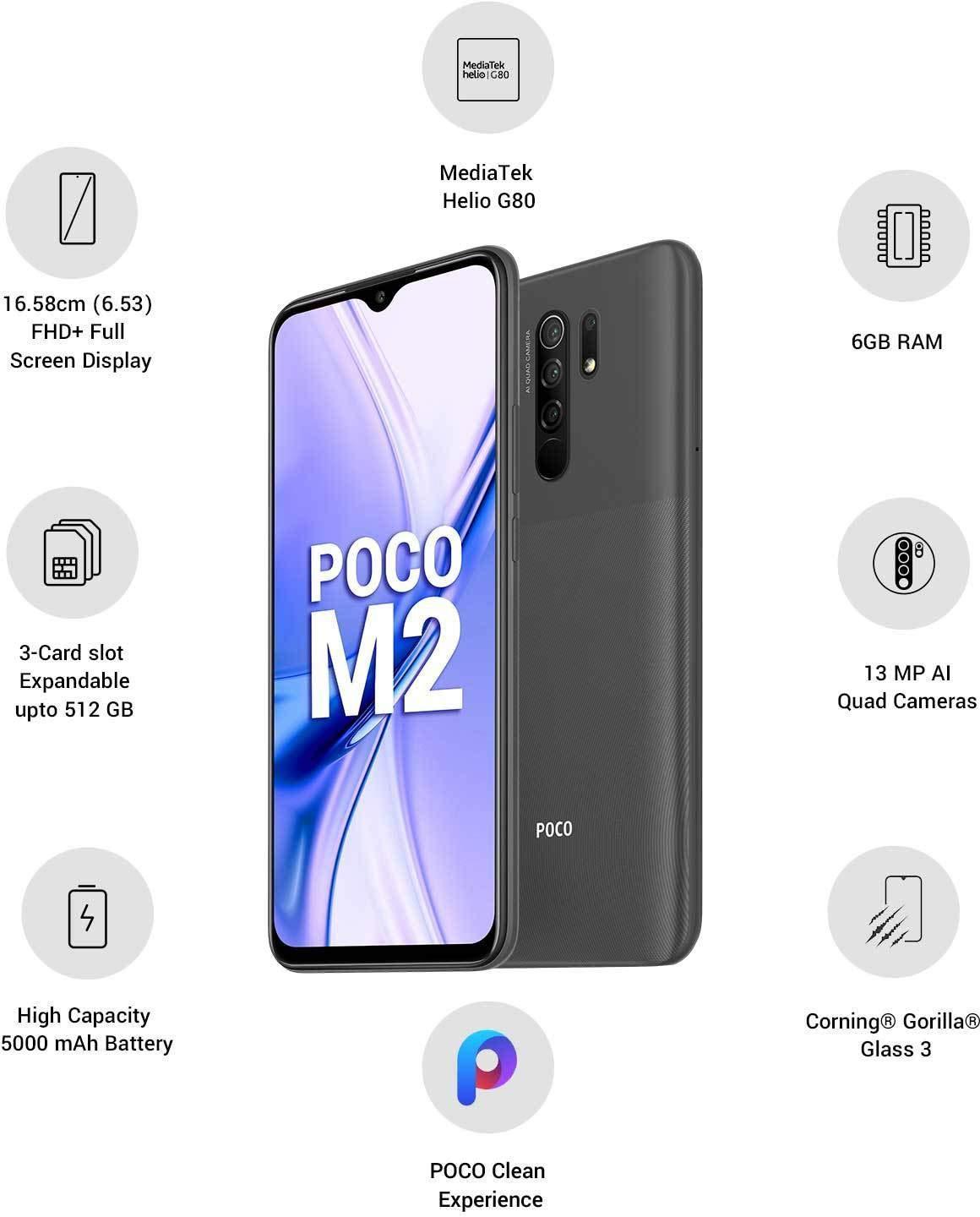 MI Poco M2 (Pitch Black, 6GB RAM, 128GB Storage) Used