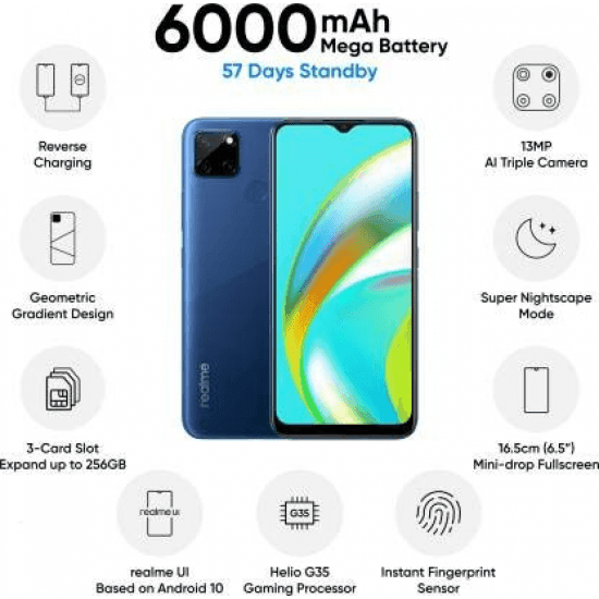 Realme C12 (Power Blue, 3GB RAM, 32GB Storage) Refurbished