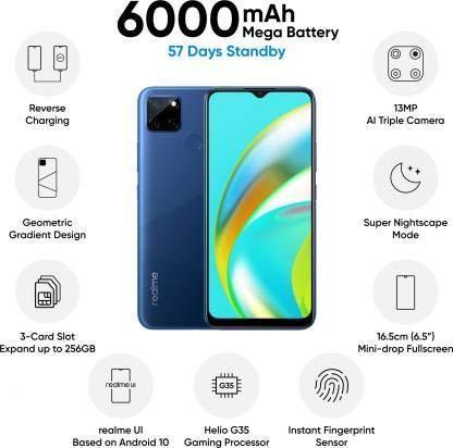 Buy Realme C12 (Power Blue, 3GB RAM, 32GB Storage) Without Offer mobile phones at the best price from Triveni World. Click for product feature details now.