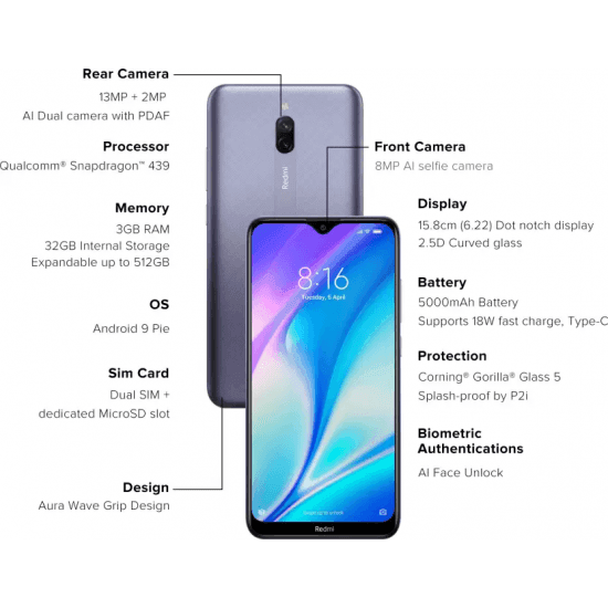 • Model Name Redmi 8A Dual