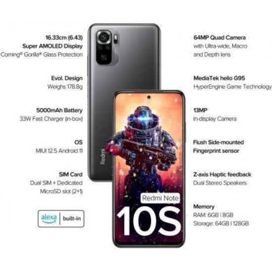 REDMI Note 10S (Shadow Black, 64 GB) (6 GB RAM) Refurbished Mobile