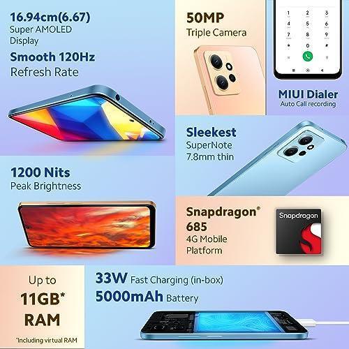 Details: Processor: High performance Qualcomm Snapdragon® 685 Octa core processor with 6nm TSMC | 11GB of RAM including 5GB virtual | 6.67" AMOLED 120Hz AdaptiveSync display with Corning Gorilla Glass Protection | 50MP Triple camera| 5000 mAh Battery with 33W Fast Charger (in-box)