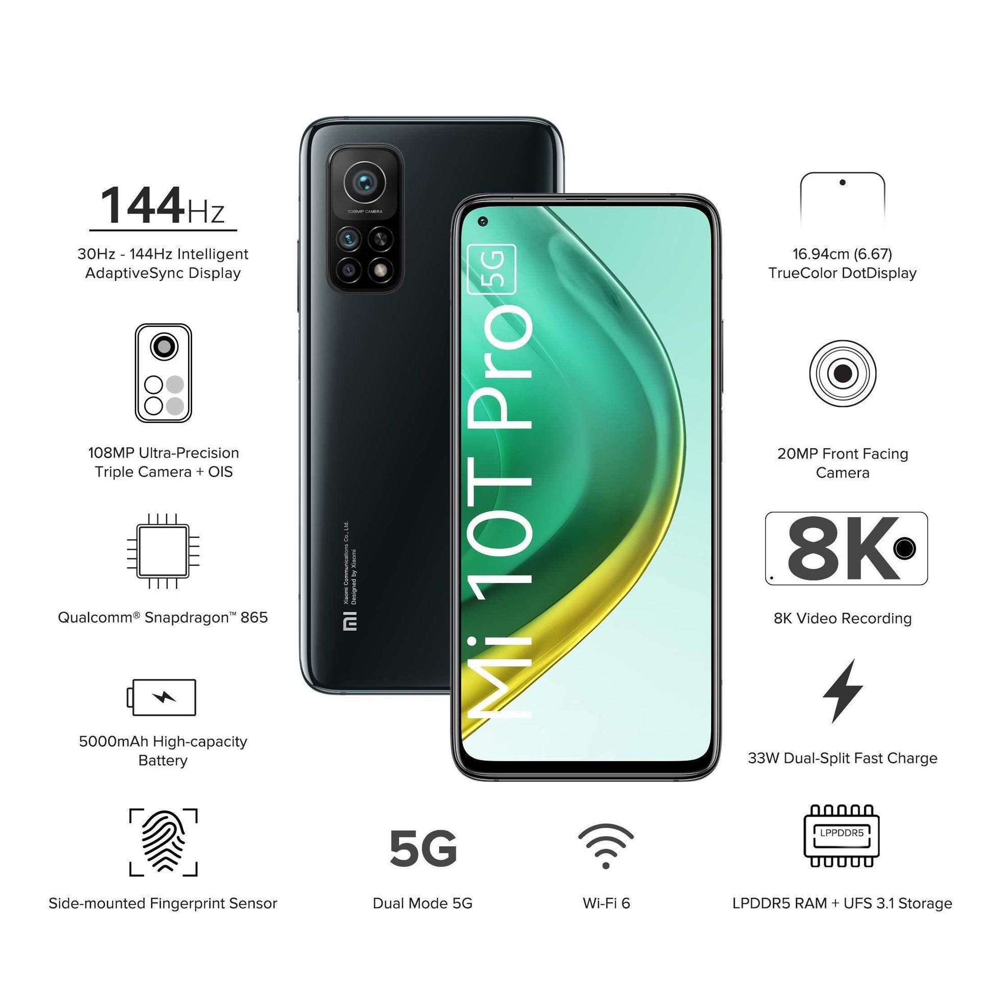 (Refurbished) Mi 10T Pro 5G (Cosmic Black, 8GB RAM, 128GB Storage)