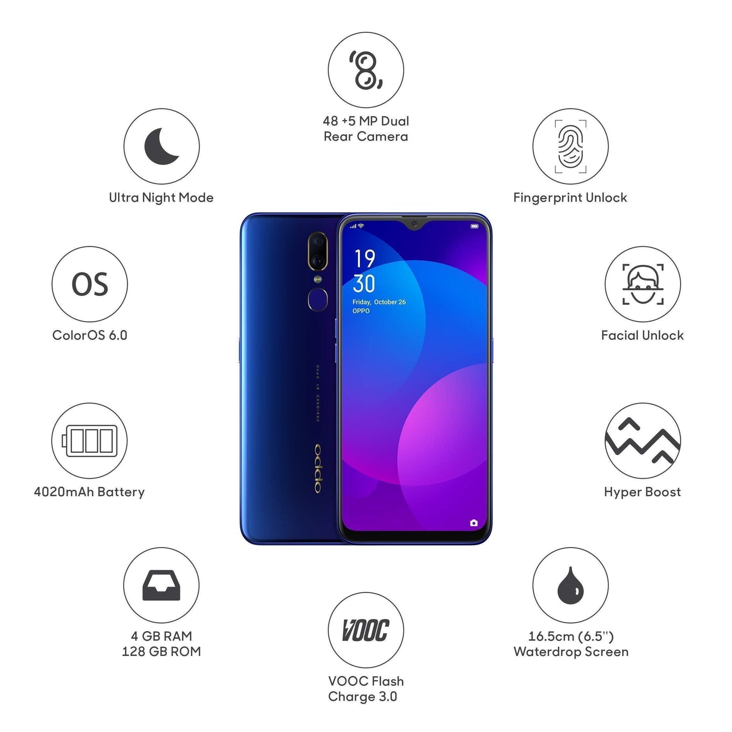 • Android v9.0 Pie based ColorOS 6.0 operating system with 2.1GHz MediaTek Helio P70 octa core processor, ARM Mali G72