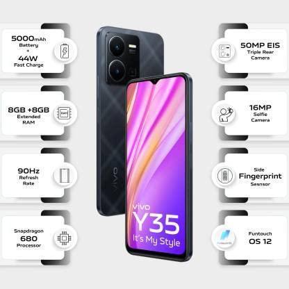 (Refurbished) Vivo Y35 (Agate Black, 8GB RAM, 128GB Storage) with No Cost EMI/Additional Exchange Offers