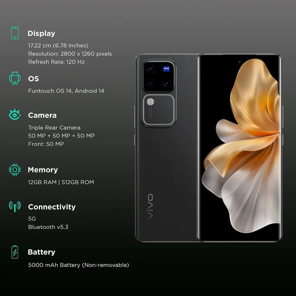 Vivo V30 Pro 5G Smartphone, 12GB RAM 512GB Storage, Classic Black Refurbished