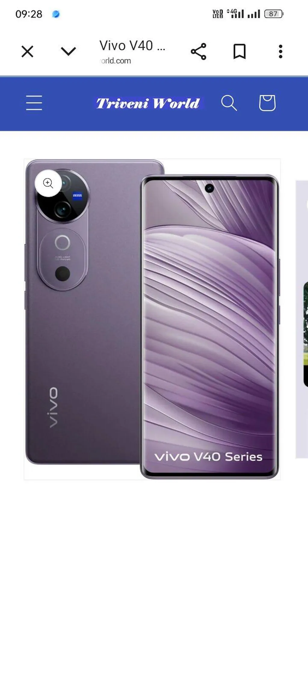Vivo V40 5G Smartphone (Lotus Purple, 8GB RAM, 256GB Storage) Refurbished
