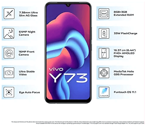 Buy Vivo Y73 (Black, 8GB RAM, 128GB Storage) - Refurbished mobile phones at the best price from Triveni World. Click for product feature details now.